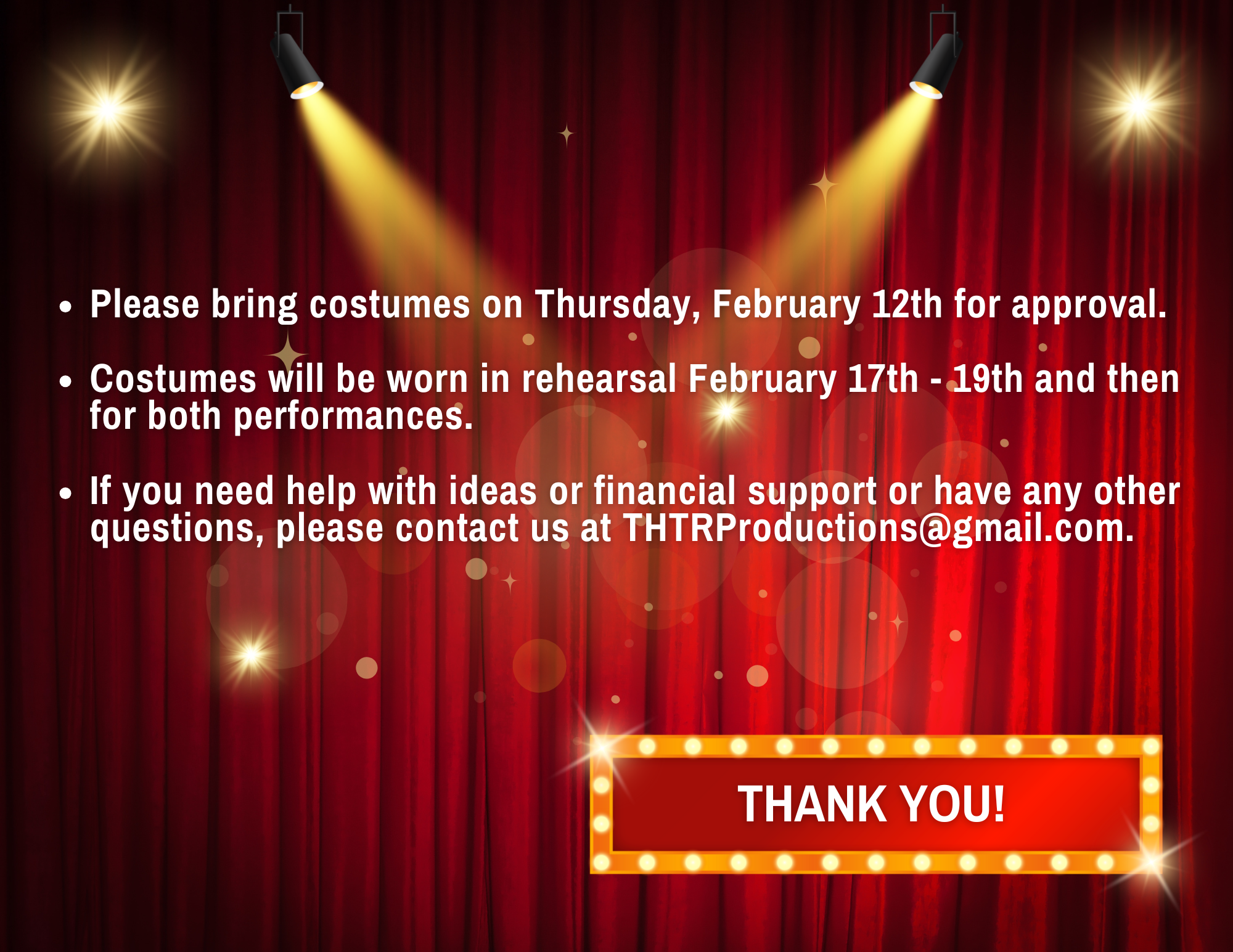 Full Cast. Stage Crew Called.